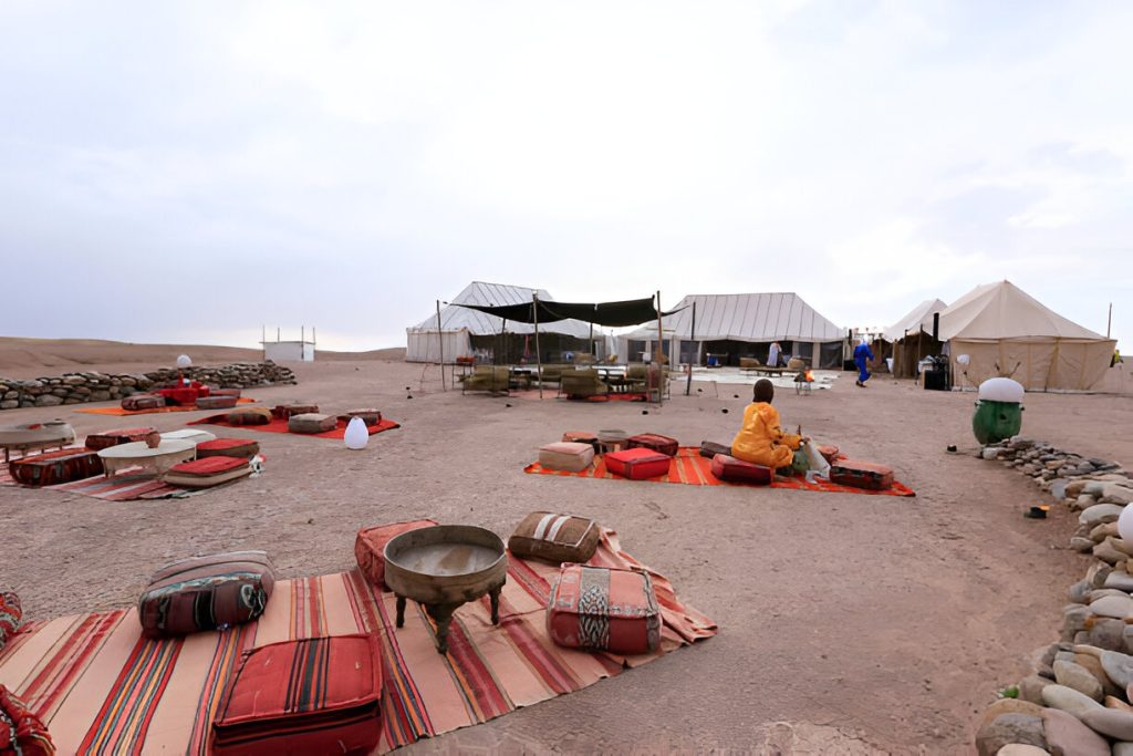 À votre arrivée au campement, vous serez accueillis avec la chaleureuse hospitalité marocaine traditionnelle. Laissez-vous séduire par le calme du désert et l’ambiance authentique qui s’installe doucement à l’heure du crépuscule.